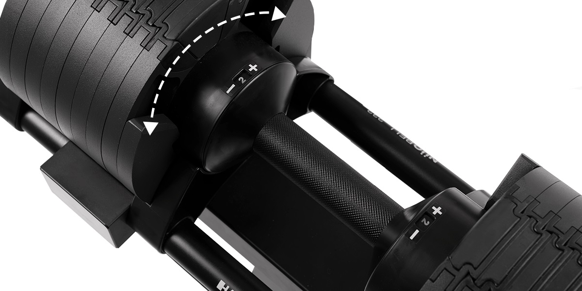 Jeden klik zmienia wszystko – zestaw hantli Smartlock umożliwia inteligentny i oszczędny w przestrzeni trening dzięki systemowi, który zastępuje kompletny zestaw hantli.