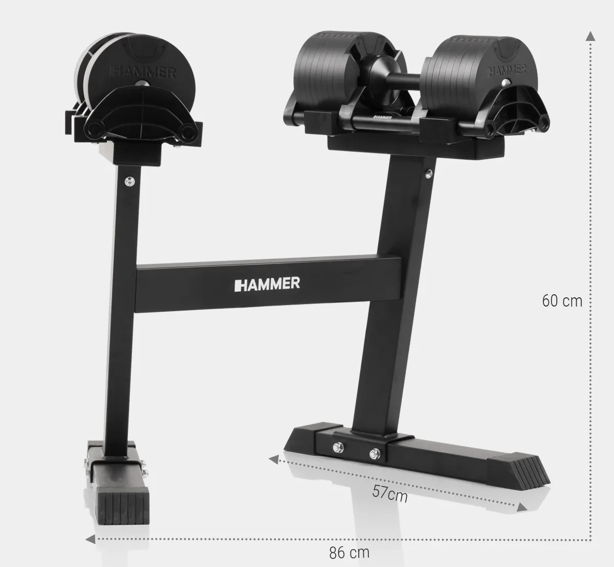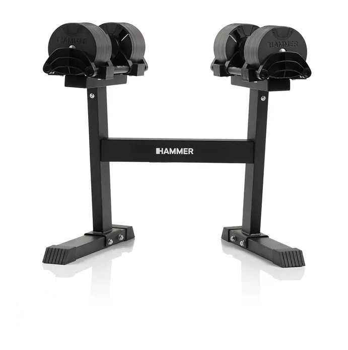 Zestaw hantli regulowanych ze stojakiem HAMMER SMARTLOCK 2x20 kg